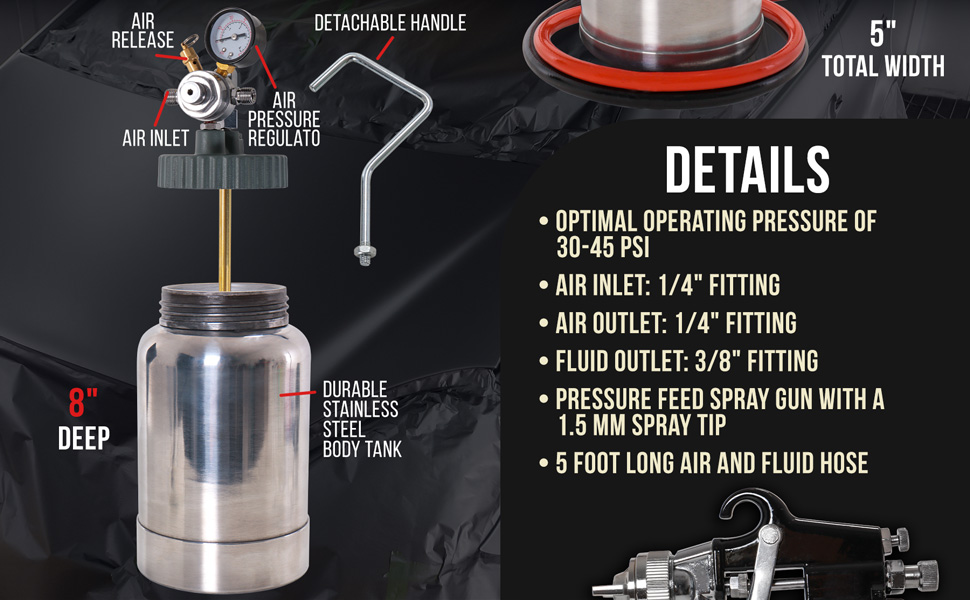 Tcp Global 2 Quart Paint Pressure Pot With Spray Gun And 5 Foot Air And Fluid Hose Assembly Power Paint Sprayers Amazon Com